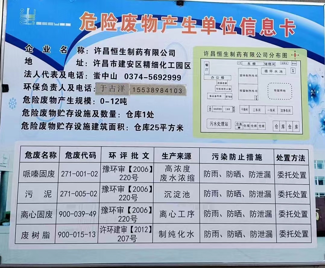 許昌恒生制藥有限公司環(huán)保負(fù)責(zé)人由谷志勇同志變更為于占洋同志,特此公告!